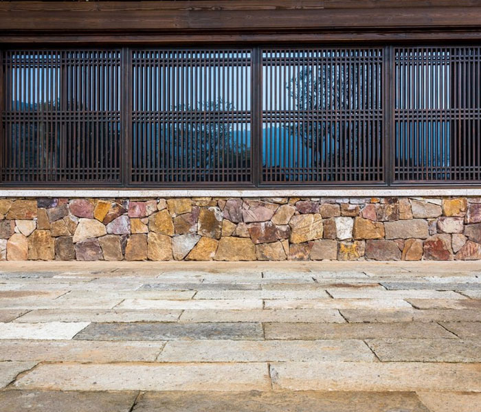 What types of stone are used for exterior cladding?
